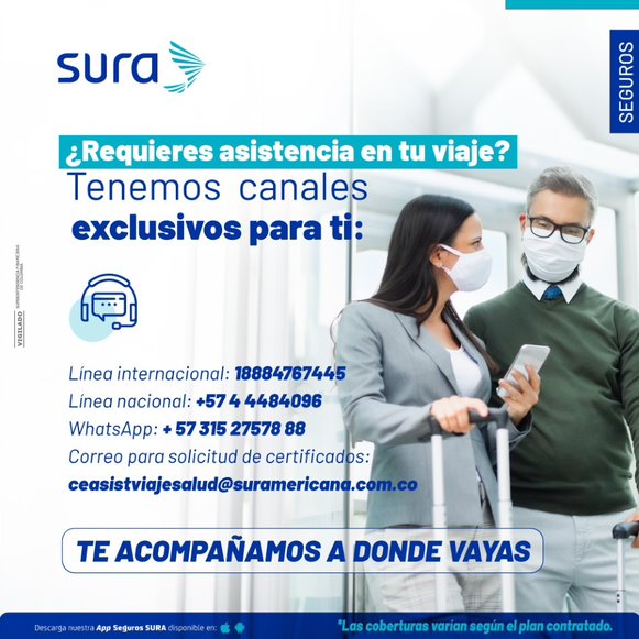 •Correo para solicitud de certificados: ceasistviajesalud@suramericana.com.co